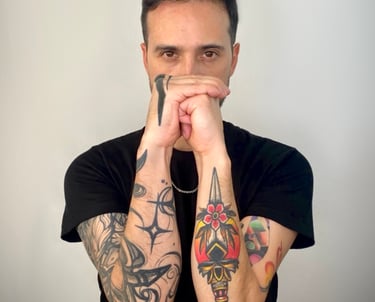 Toda esta formación académica ha nutrido profundamente mi visión estética y conceptual del tatuaje. Hoy, canalizo ese conocimiento en cada diseño, buscando dar sentido a las imágenes que acompañarán a cada persona de por vida.